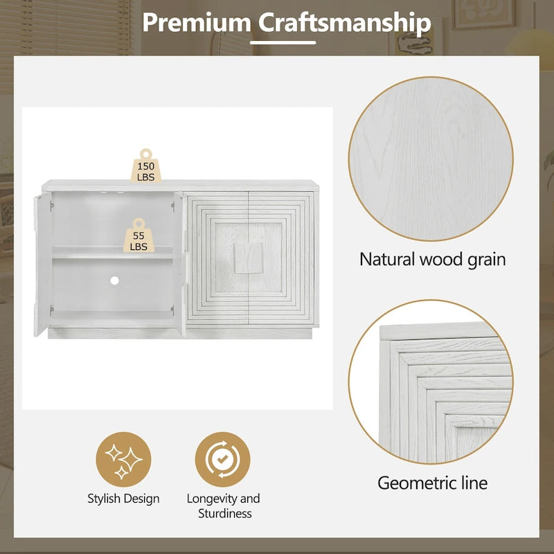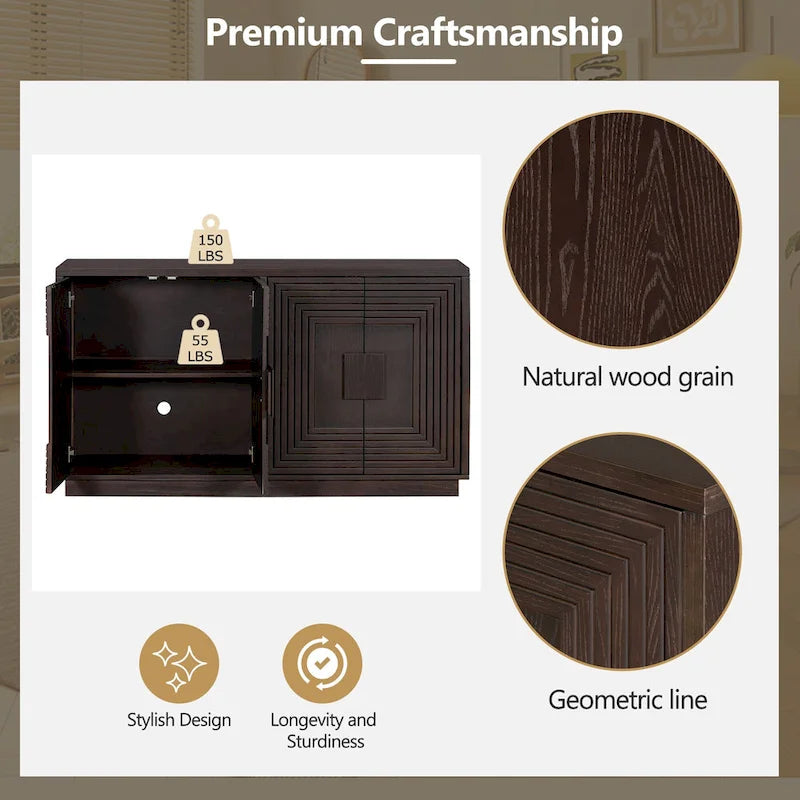 4-Door Vintage Fluted Sideboard Buffet Cabinet with Adjustable Shelves