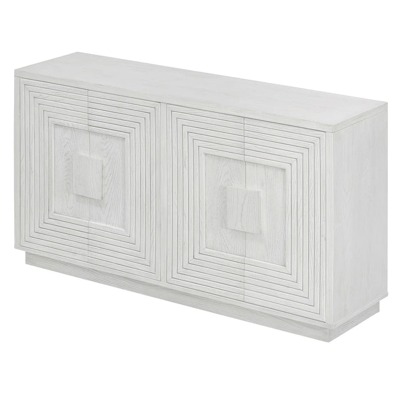Functional Details: This fluted buffet cabinet includes pre-cut cable management holes on the back panel, making it perfect for organizing electronics and keeping cords hidden. A built-in locking mechanism secures the doors when closed, ensuring quiet operation and added safety, making it both stylish and practical.