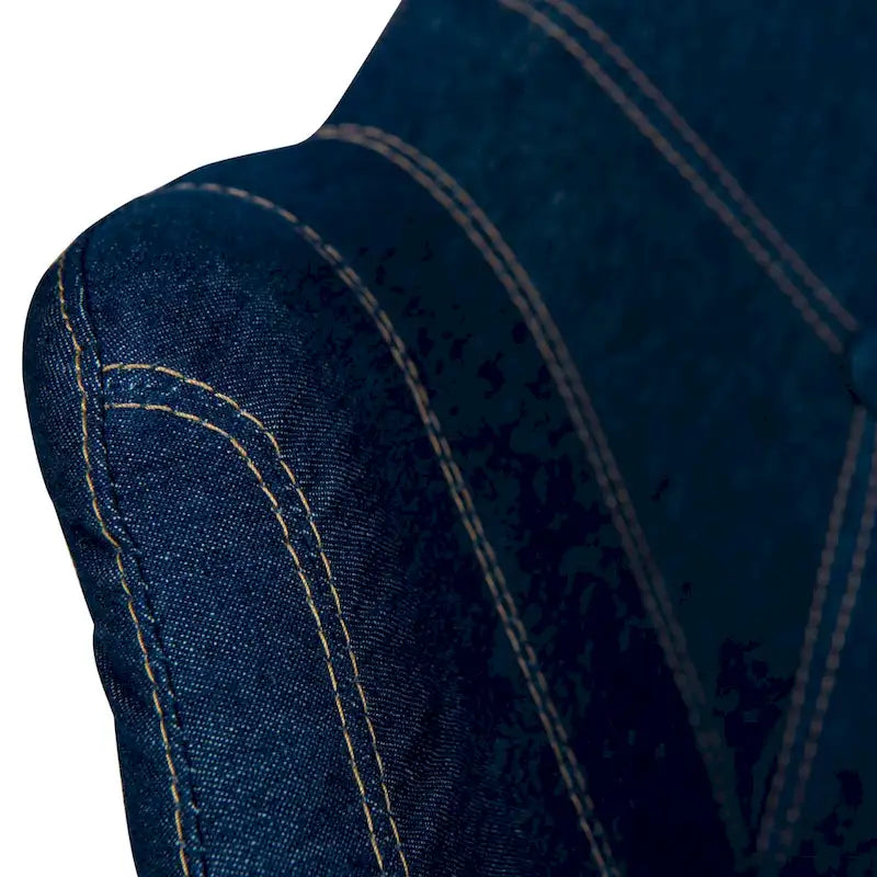 - Premium Denim Upholstery: The chair is upholstered in 100% cotton denim fabric with a tufted button design for added texture and style. Denim's tightly woven cotton fibers resist wear and maintain their structure over time. The fabric enhances the chair's modern aesthetic while providing a refined finish.