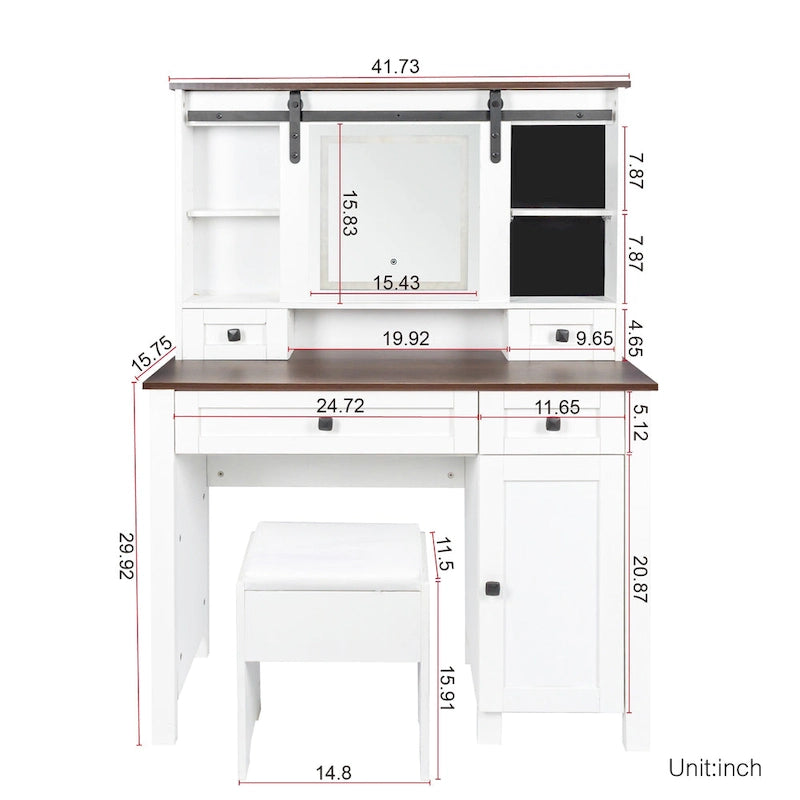 41.73 Wide Dressing Table Set with 4 Drawers 1 Cabinet Dressing Table