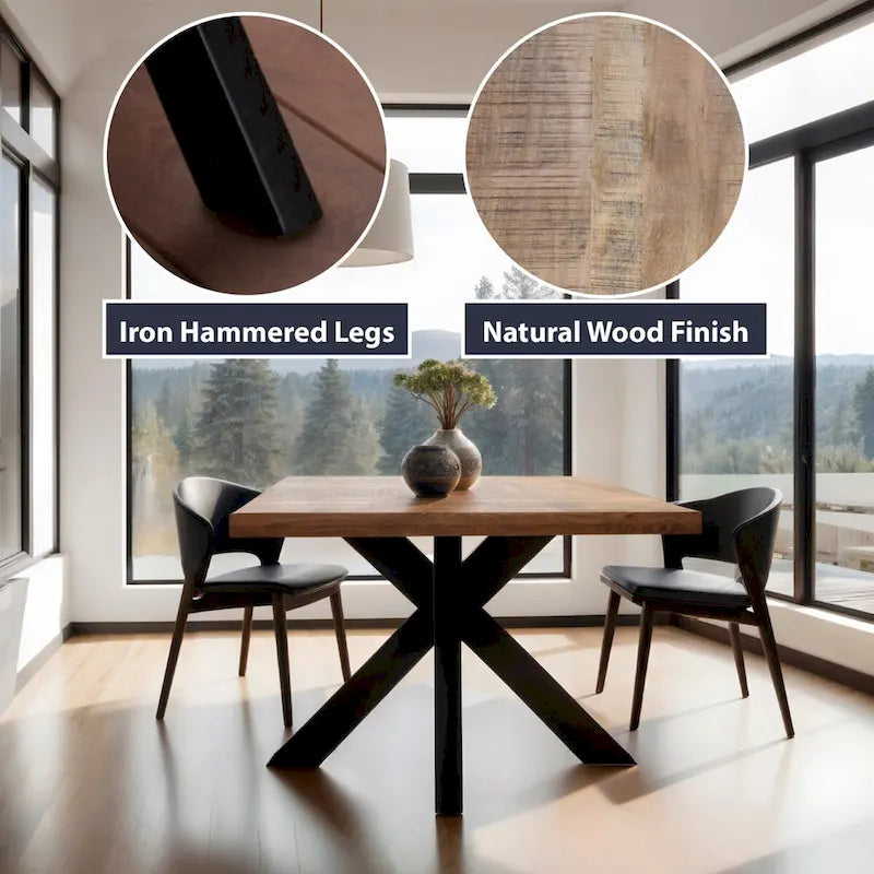 48 Square Dining Table, Solid Mango Wood with Sturdy Metal Spider Leg