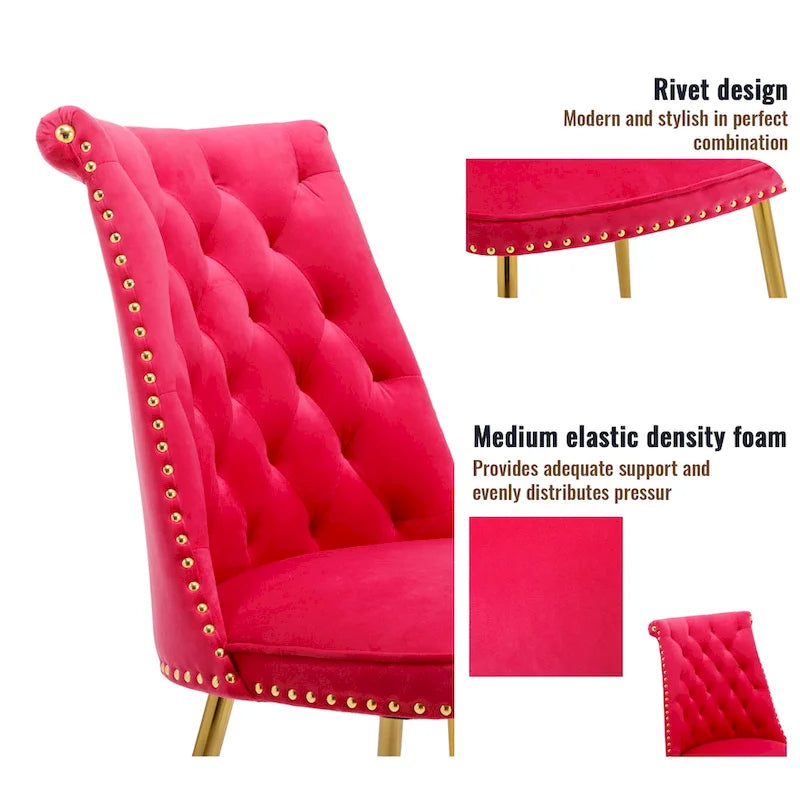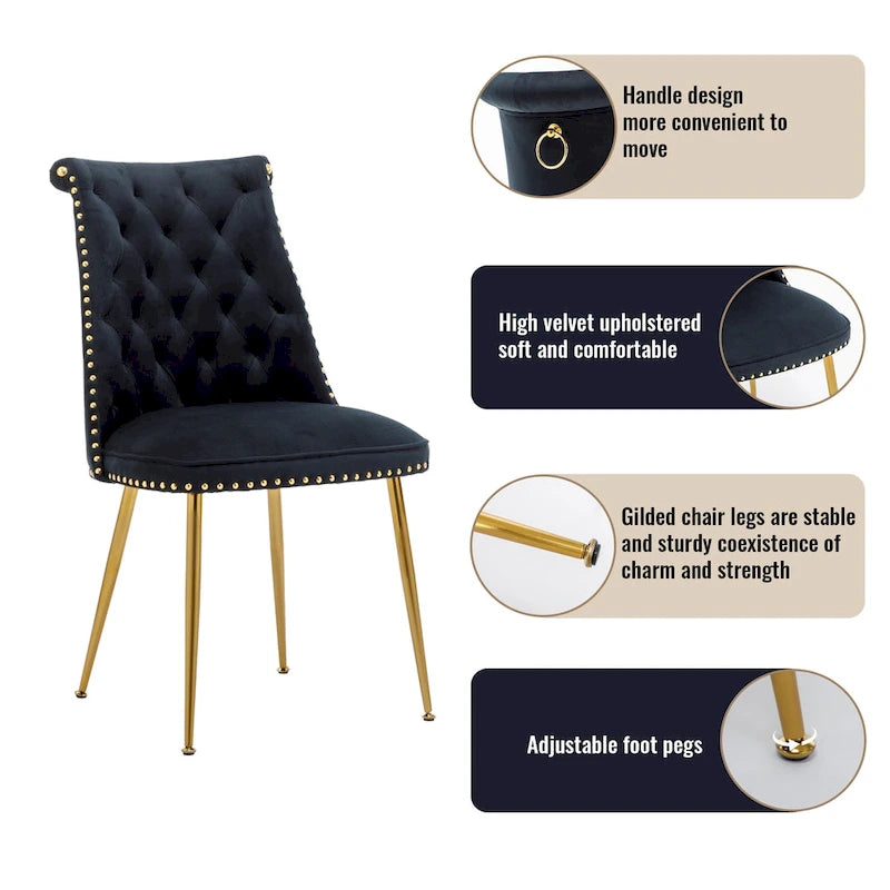 This dining furniture set is a high-end choice for a relaxing space, perfect for family living. Classic walnut top with gold feet for a stylish look. Thick wood and high quality metal make up a stable structure to ensure long-term use and stability. The dining chair features high quality velvet fabric, metal legs and comfortable padding to complement the table.