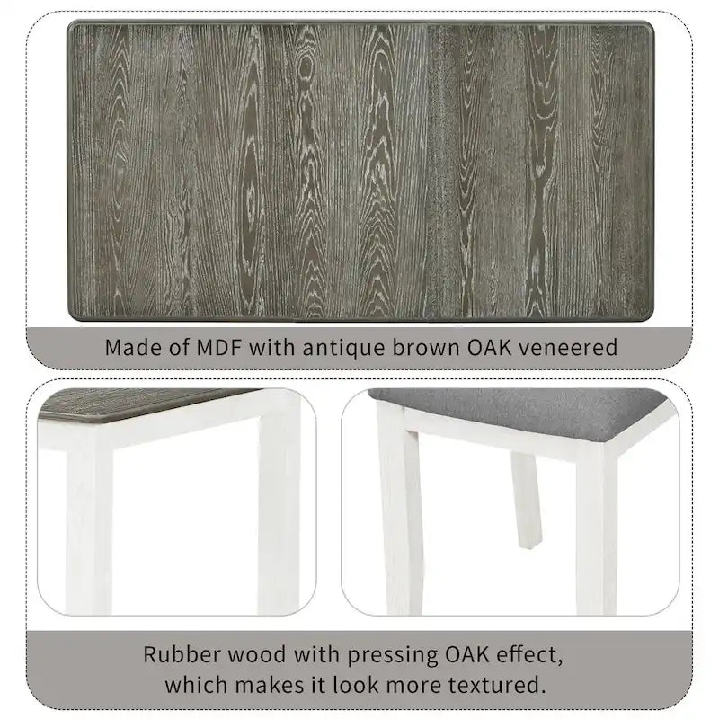The back of the chair is ergonomically designed, with just the right curve to support your back.With comfort in mind, the chairs are equipped with linen upholstered to provide you with a comfortable use while dining and working. The surface of the table is made of antique brown OAK veneered, which is very beautiful.The white legs of the table and chair are matched with pressing OAK effect, which makes it look more textured.