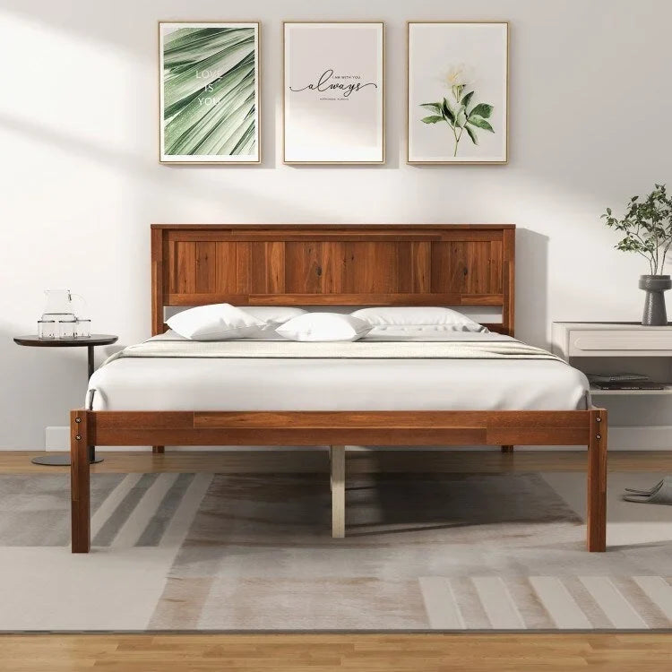 Sturdy Wooden Frame: Thanks to the high-quality solid wood material, the wood bed frame has a large bearing capacity and a long lifespan. With solid wood legs (and strong central support), the bed frame features a non-sinking construction that support up to 440 lbs/660 lbs.