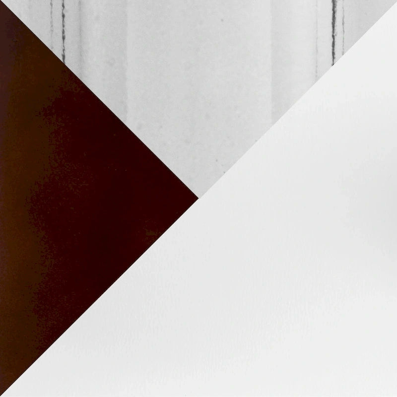 - White Faux Leather + Mahogany Wood + Chrome Metal
