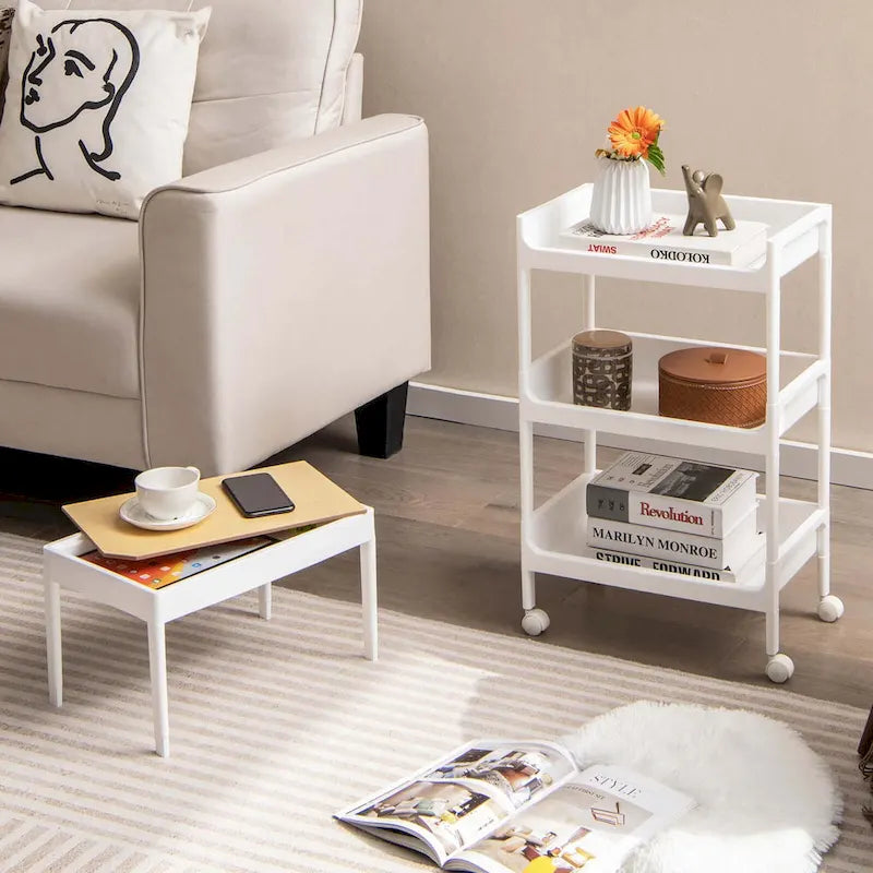 Our rolling storage cart is not only versatile but also stylish, making it an essential storage solution for any space in your home or office. With ample space to store all your household items and a removable top cover design, you can place a laptop, magazines, books, or cups for extra convenience. The sturdy white PP frame and MDF top cover make the cart both sturdy and easy to keep clean. Besides, four smooth-rolling wheels including two lockable wheels, make it effortless to move, maintain stability, and optimize your space utilization in any area you desire. Furthermore, its unique design effectively maximizes storage space and is ideal for narrow areas, making it a functional and fashionable storage solution. Invest in our rolling storage cart today and enjoy unparalleled convenience and organization at your fingertips.