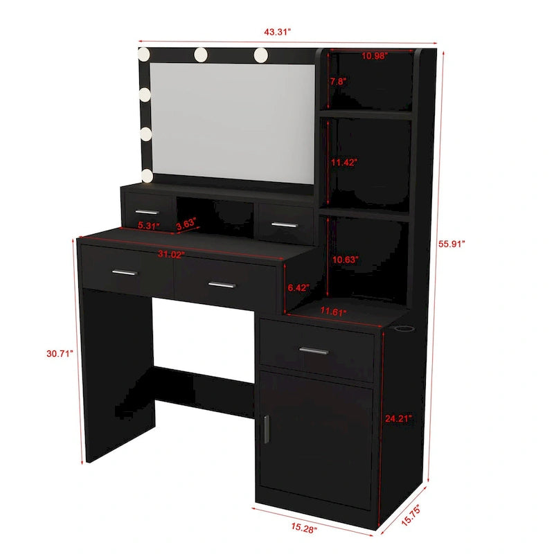 - This makeup Vanity has a plenty of storage ,3 open shelves,1 hiden shelves, and 4drawers can manage efficiently your cosmetics, jewelry and other makeup items, it is a good helper make your desktop look cleaner and more tidy.