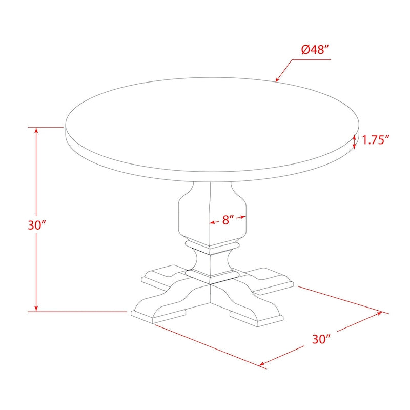 - Dining Table Dimensions: Length: 48; Width: 48; Height: 30.