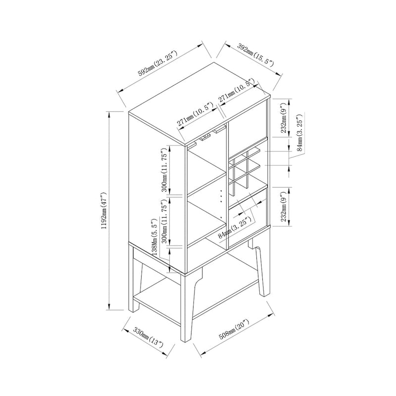 Turn every gathering into a party with this distinctive and convenient open-shelf buffet. The sleek and engaging design boasts a tall, slender profile to maximize floor space while lending a little something unique to your decor. The abundant storage spaces include glass racks and a nine-bottle grid wine rack to keep all your favorites close at hand.