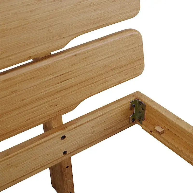 Experience mid-century design with a modern touch in our Currant Queen Platform Bed. The bed's uniquely designed headboard and sleek tapered legs showcase the beauty of solid bamboo. Made for use with a mattress only, this bed features a solid bamboo European slat system that removes the need for a box spring and provides constant ventilation for your mattress. Available in caramelized finish, this elegant piece is crafted in solid Moso bamboo and is available in King and California King sizes. Get the timeless look you want with the Currant bed.