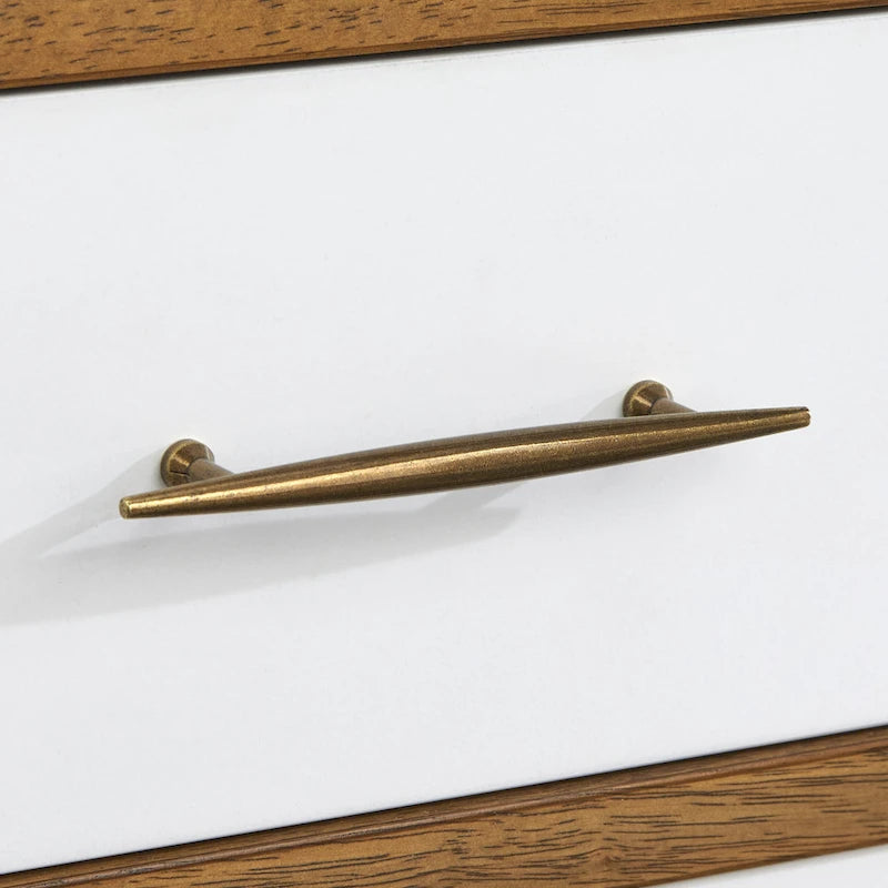 - Brass finished metal drawer pulls