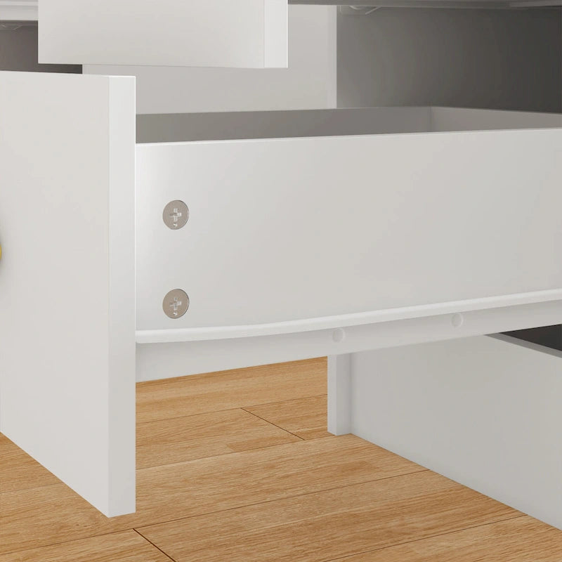 Elegant Design: With a sleek density board construction, tempered glass accents, and golden crystal handles, this vanity set exudes sophistication.