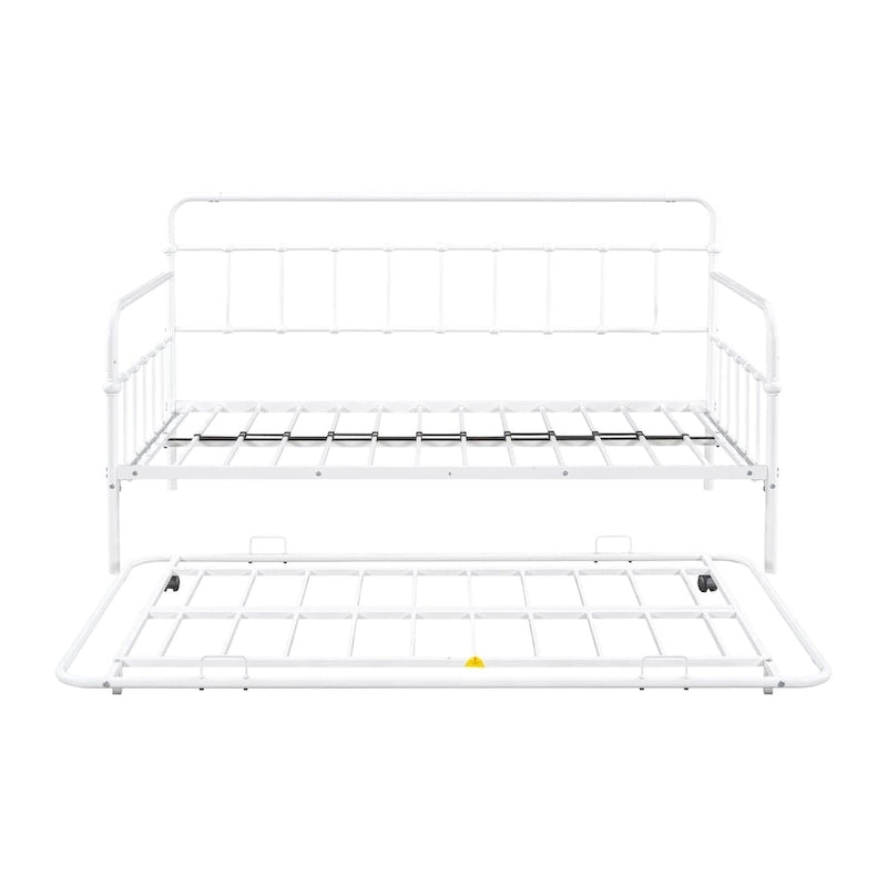Solid Construction: Crafted from strong and sturdy metal, our daybed is built to last. Its solid construction provides the durability and stability you need for a comfortable night's sleep. The metal slats not only support your mattresses securely but also allow air to circulate freely beneath your bed, ensuring your mattress stays fresh and extends its lifespan.