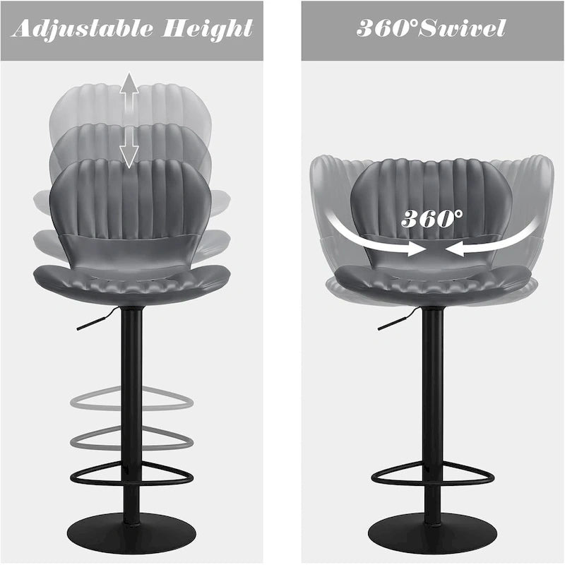 ADJUSTABLE HEIGHT & 360 SWIVEL: In seamless conversations with friends as you enjoy the convenience of a full 360-degree rotating seat. This feature allows you to easily turn and face your companions, enhancing your social interactions and making gatherings more enjoyable.Contemporary Design: Elevate your space with our stunning bar chair, showcasing a modern style and beautiful color that effortlessly complements any setting, whether in your living room, kitchen, office, or restaurant. Its sleek design adds a touch of sophistication to your decor.Ultimate Comfort: Experience unparalleled comfort with the chair's high-density sponge-filled cushion. Designed for elasticity, it provides a cozy seating experience while ensuring the cushion remains free from deformation over time, making it perfect for extended use.EASY TO ASSEMBLE & CLEANThe installation process is very simple and can be completed in about 5 minutes. The easy-care PU leather seat cushion features innovative technology, and the seat padding is shaped to maximize your comfort. PU leather has a protective finish that's easy to wipe clean with a damp cloth.Simple Installation: Our package includes all necessary accessories and detailed instructions for hassle-free installation. With just a few screws to tighten, you'll have your chair assembled quickly and efficiently, allowing you to enjoy your new seating in no time.