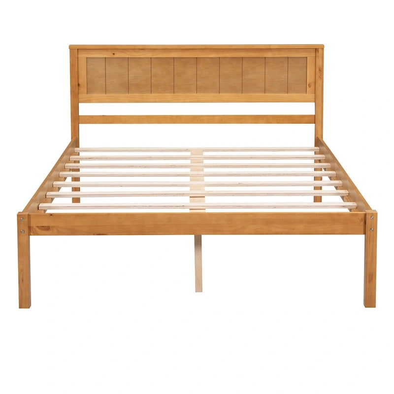 Pine Wooden Platform Bed with Slat Support and Headboard