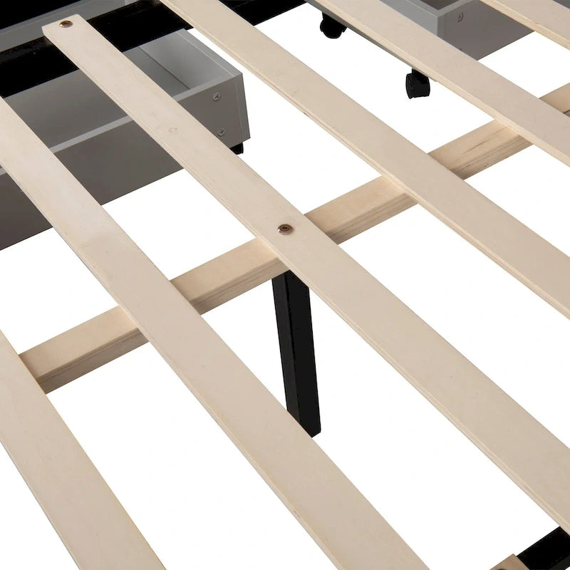2 Drawers and Trundle Bed: This bed frame comes with two drawers and a trundle bed.The pull-out bed is equipped with 4 sturdy wheel, which can be easily pulled out when you want to use it.The two drawers can hold clothes toys pillowcases, comforters, sheets, and more.