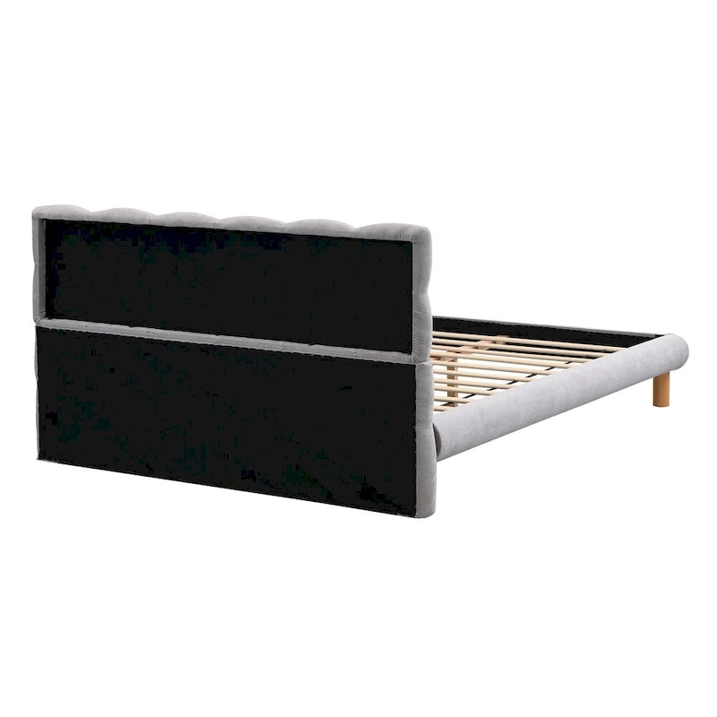 Queen Size Upholstered Platform Bed Modern Tufted Bed Frame with Cookie-Shaped Headboard for Guest Room and Bedroom