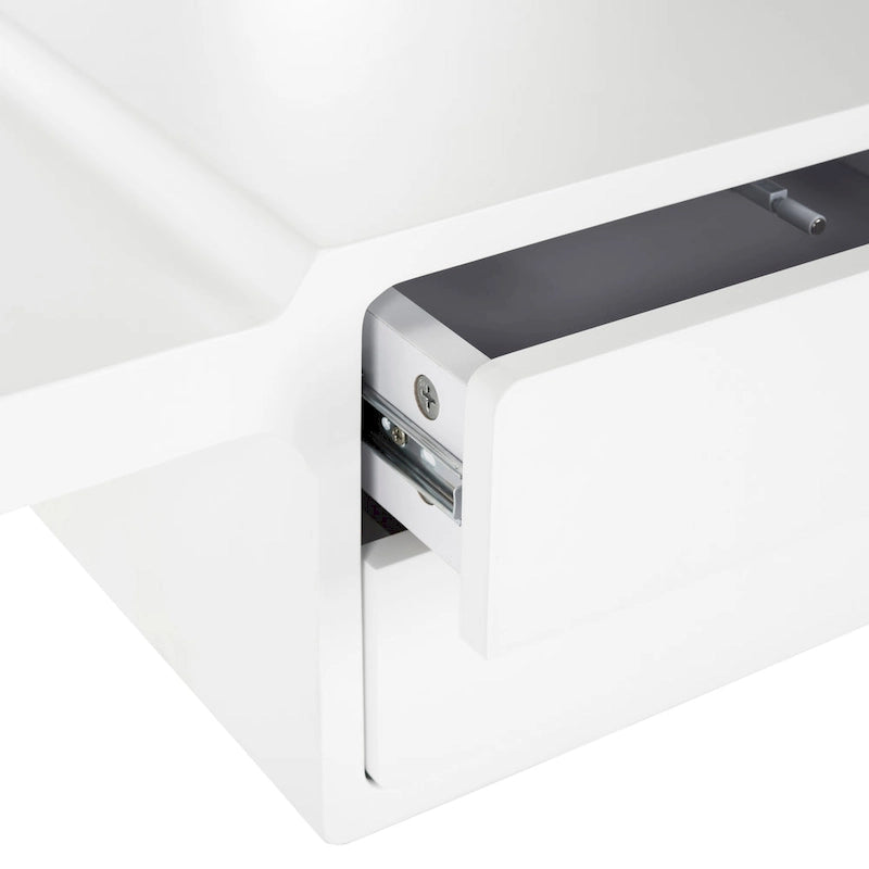 The natural choice for the modern study, this contemporary desk instantly updates the office. Its bright white matte finish and tubular metallic legs are at home in any environment. Clean lines and ample two drawer storage make it a designer favorite.