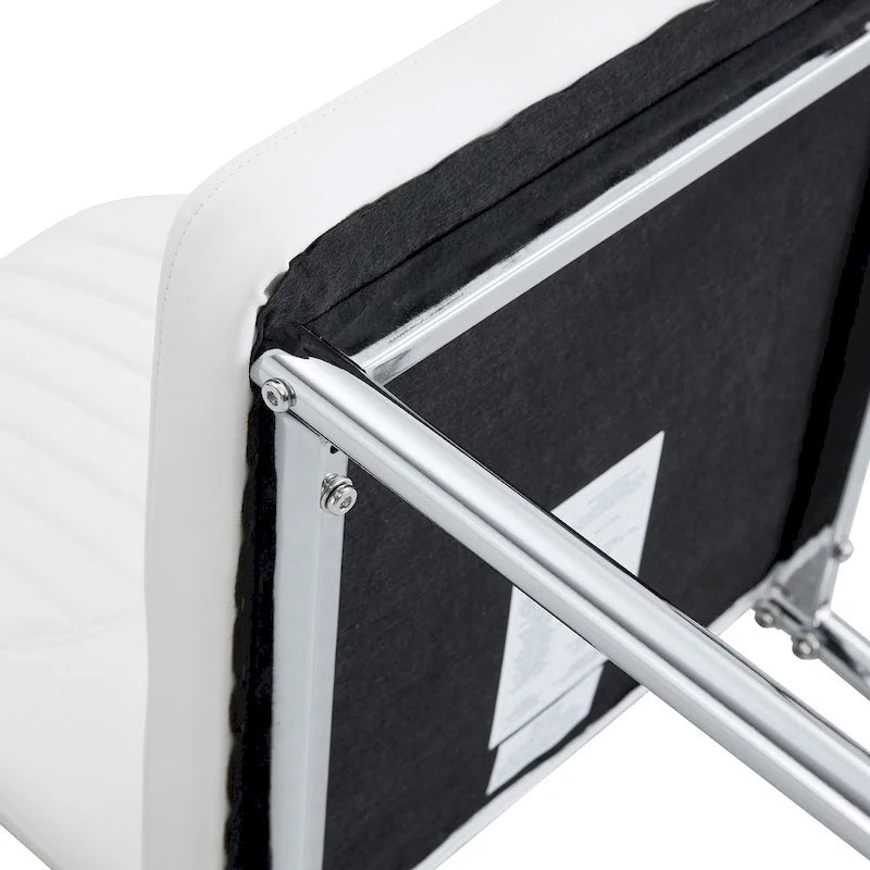 Material application: The backrest and seat cushion are made of white PU synthetic leather material, which has good wear resistance and faux leather texture, giving the chair a delicate appearance and easy daily cleaning and maintenance; Internally filled with high-density sponge to ensure a comfortable sitting experience and excellent resilience, effectively relieving the pressure of prolonged sitting.
