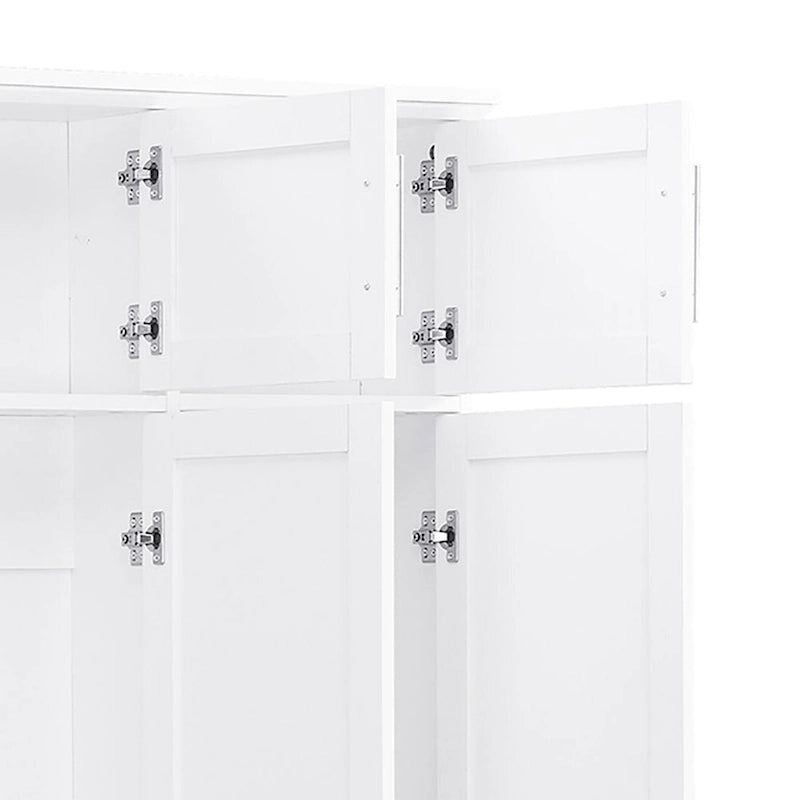 Stylish Wooden Tall Hall Tree with 8 Cabinets and 4 Open Storage Compartments