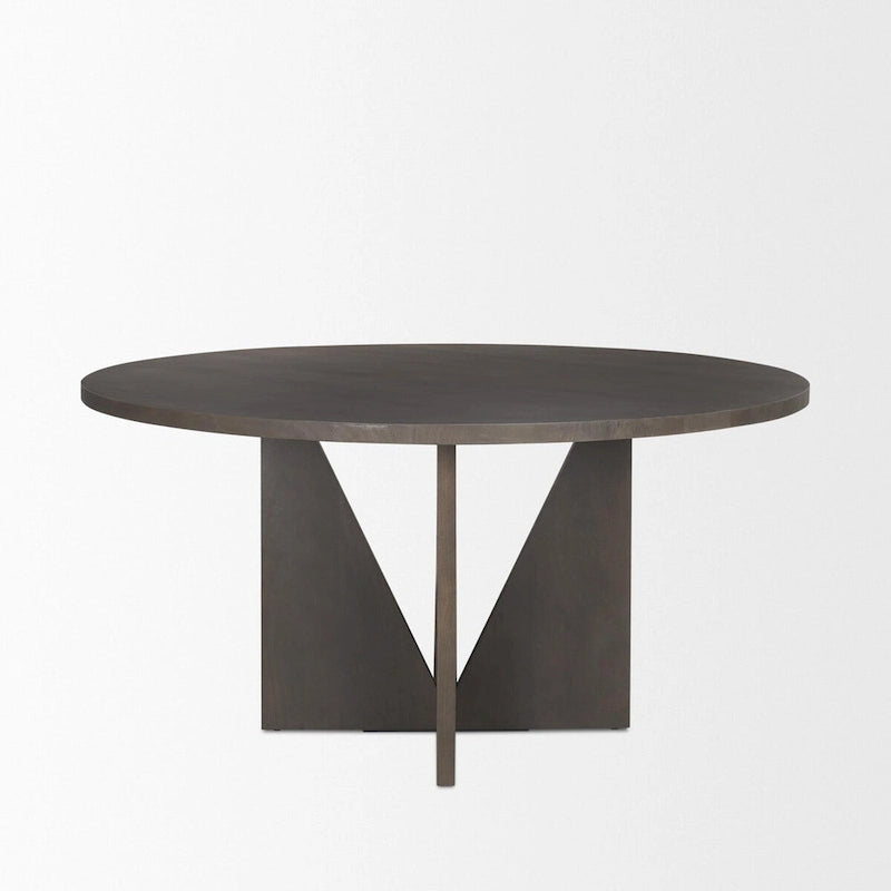 Tarro 60 Round Textured Espresso Wood w/ Geometrical Base Dining Table - 60.0L x 60.0W x 30.0H