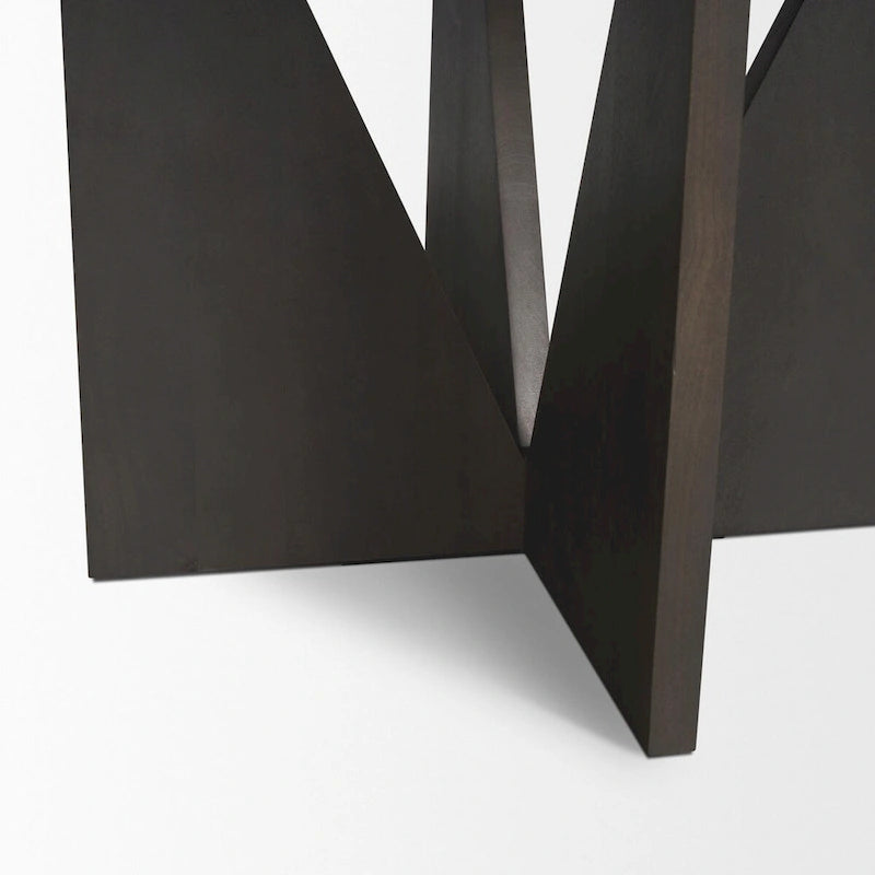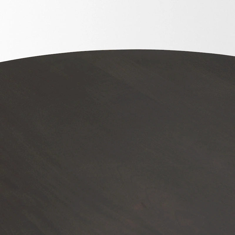 Tarro Dining Table is a sleek fusion of contemporary design and timeless elegance. Constructed from solid wood, its round tabletop is supported by four angled legs forming a striking sculptural silhouette, exuding architectural allure. Finished in deep espresso, it's a captivating centerpiece for any dining space.