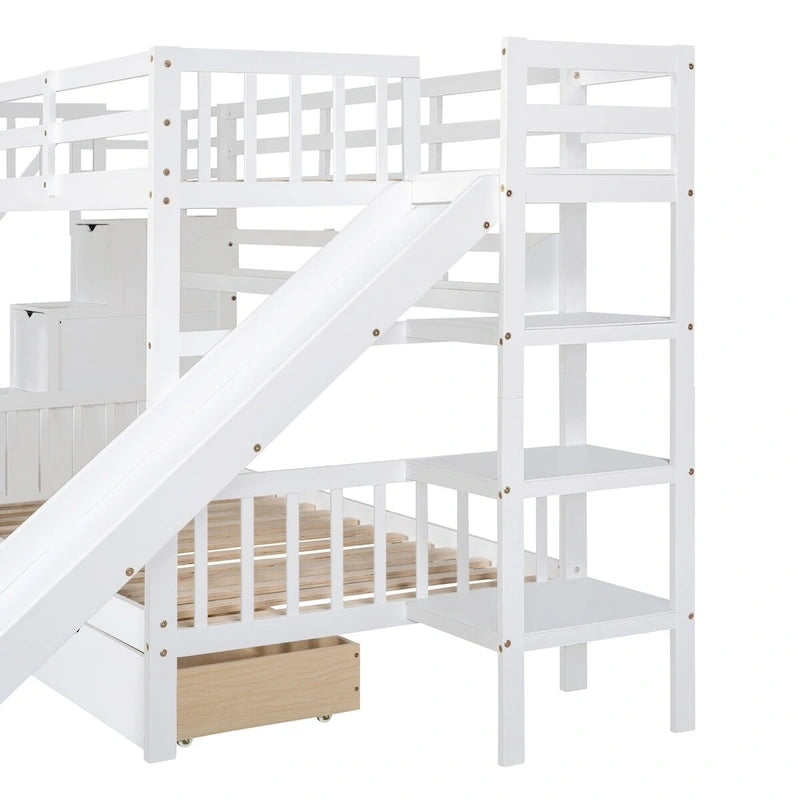 Twin-Over-Twin Castle Style Bunk Bed with Drawers,Shelves,Slide