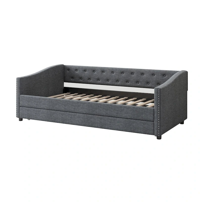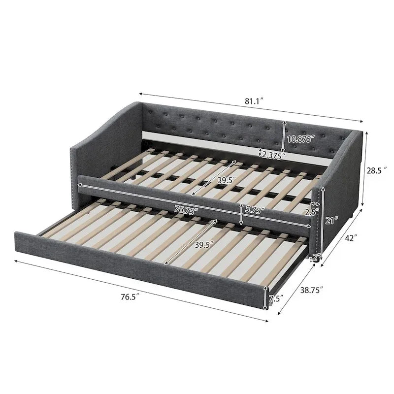 Twin Size Upholstered Tufted Daybed with Trundle and Copper Nail