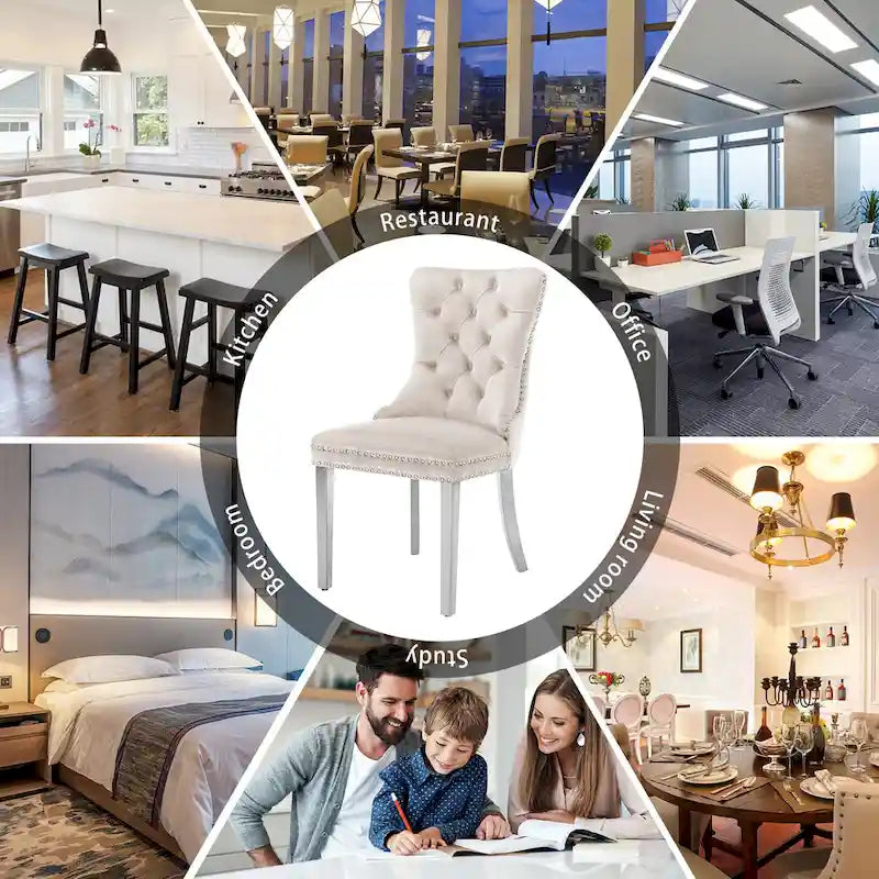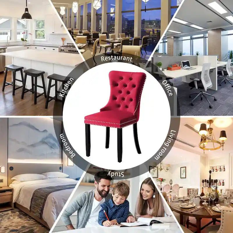 Upholstered Tufted Velvet Dining Chair with Solid Wood Legs Set of 6