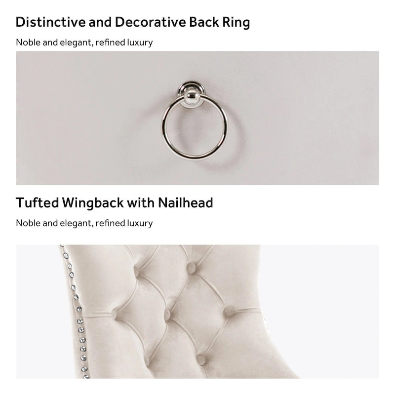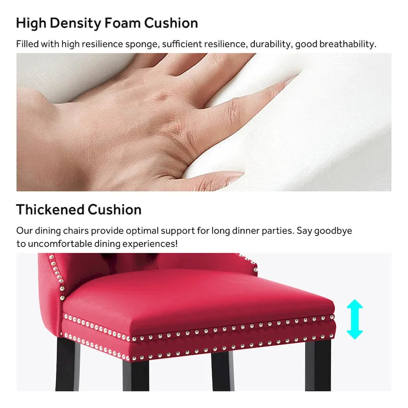 These wingback dining chairs are made of high-quality velvet fabric, which has super wear resistance and will not fade, the fabric is thick and luxurious, the touch is very delicate. This velvet dining chairs set featuring a very modern mid-century look. This dining chair set is equipped with high backrest for a strong comfortable back support. Plenty decorative rivet inset around cushion and back not only make it looks noble and elegant but also give the whole chair a feeling of exquisite luxury. We provide assembly instructions and assembly videos. If you have any questions, please contact us.