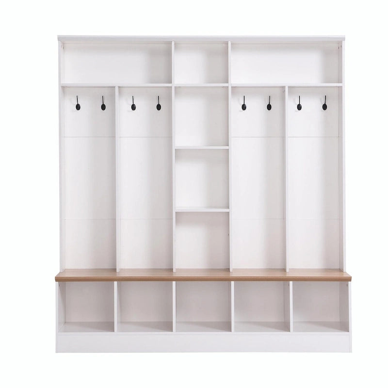 Wide Hall Tree with Storage Bench - Minimalist Shoe Cabinet, Cube Storage, 8 Hooks